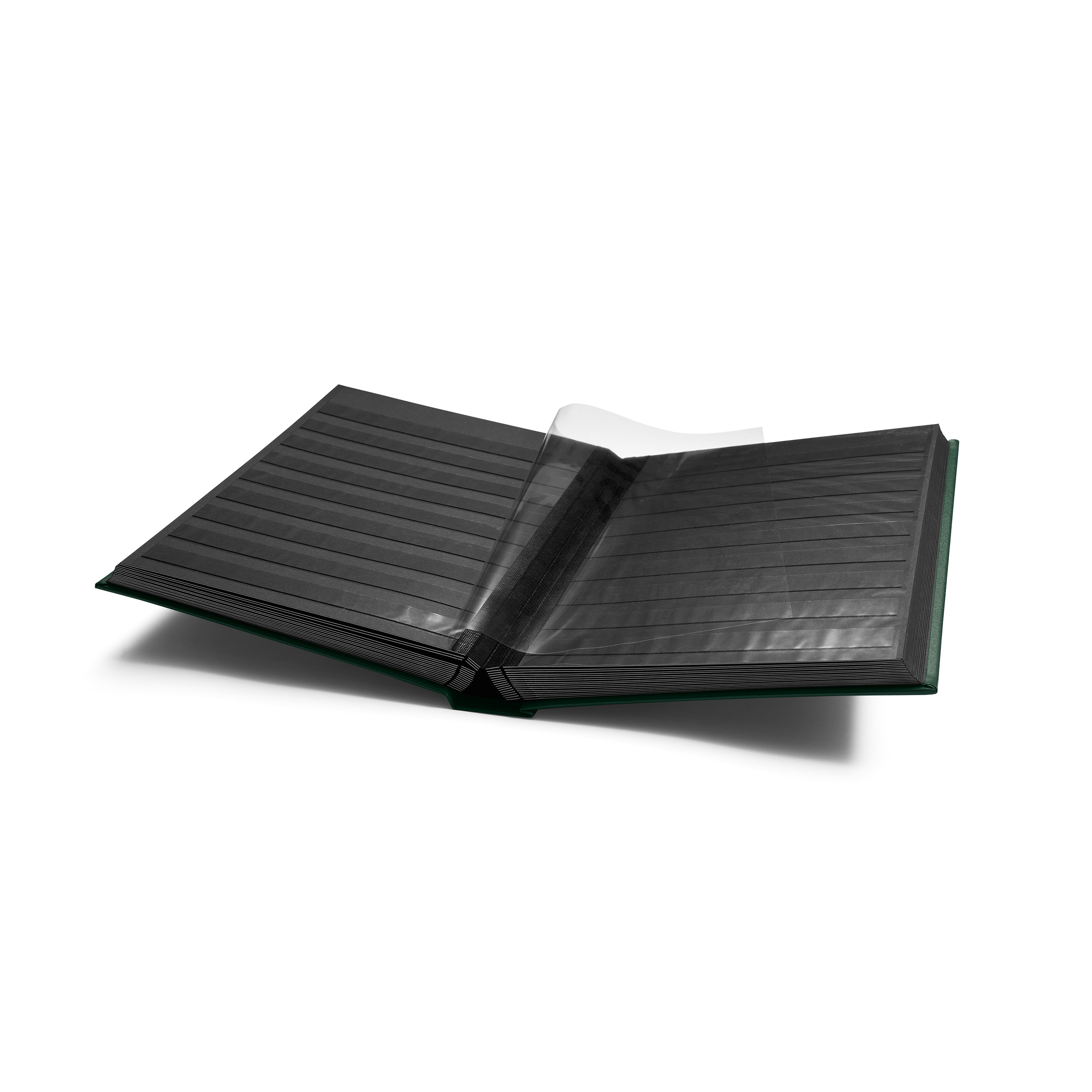 Classeur de format A4 PREMIUM avec 64 feuilles noires. Couverture ouatinée cuir*, double articulation toilée. Matériau des bandes: feuille spéciale sans acide ni plastifiant.