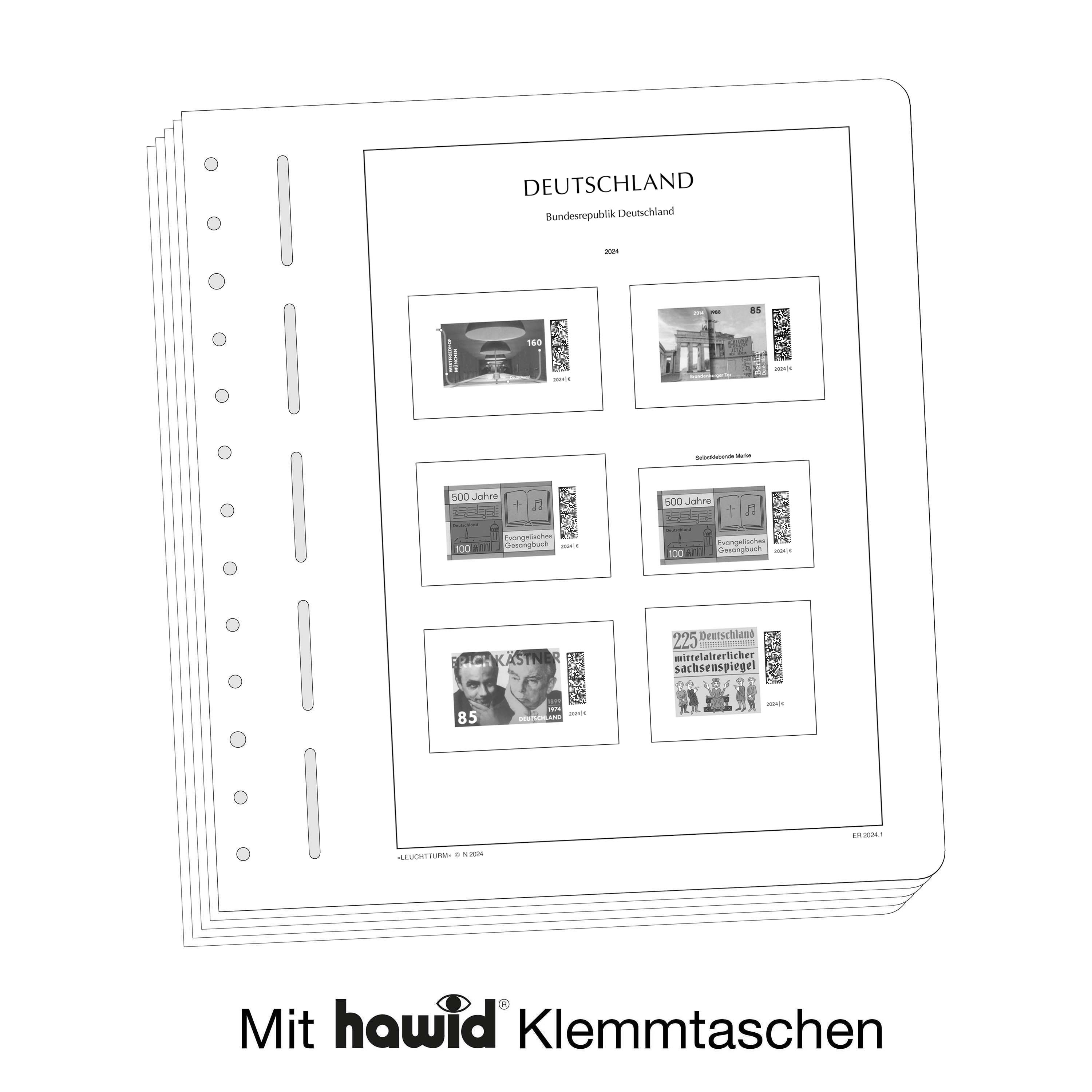 Les feuilles LEUCHTTURM (format 270 x 297 mm / système à 13 trous) sont imprimées par offset, en noir et blanc, avec un grand souci de précision, sur du papier stable, sans bois ni acide (170 g/m 2 ). Nous renonçons volontairement à une impression en couleurs. Vous pouvez ainsi plus facilement savoir quels timbres manquent encore dans votre album. Des pochettes de protection, fabriquées à partir d'une feuille de polystyrène traitée anti-reflet, transparente et sans plastifiant acide, découpées au format des différents timbres, sont collées sur les pages des albums. Les pochettes de protection maintiennent les timbres bien en place, sans qu'il soit nécessaire de les coller. De plus, elles assurent une protection optimale contre la poussière et divers dommages.