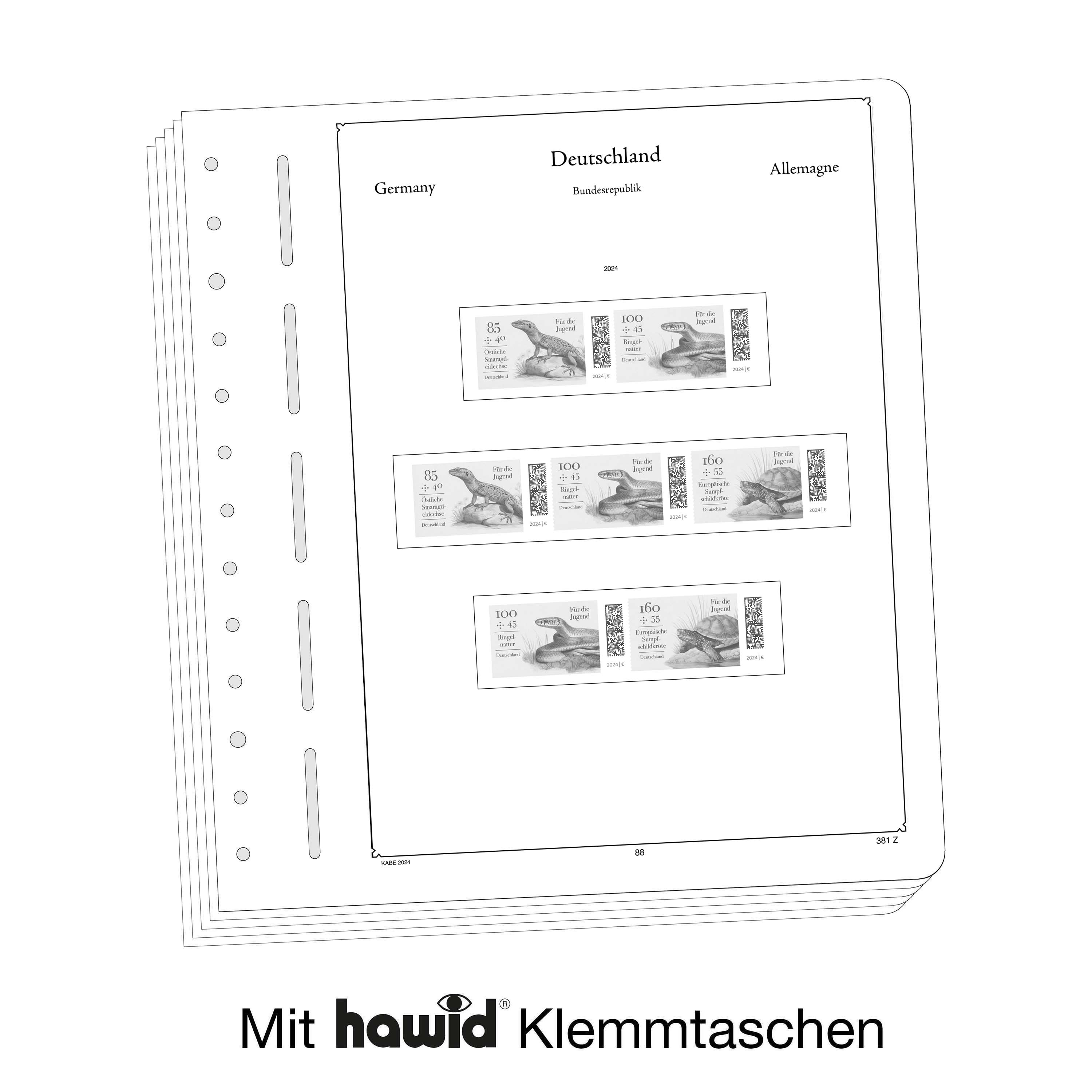 Les feuilles LEUCHTTURM (format 270 x 297 mm / système à 13 trous) sont imprimées par offset, en noir et blanc, avec un grand souci de précision, sur du papier stable, sans bois ni acide (170 g/m 2 ). Nous renonçons volontairement à une impression en couleurs. Vous pouvez ainsi plus facilement savoir quels timbres manquent encore dans votre album. Des pochettes de protection, fabriquées à partir d'une feuille de polystyrène traitée anti-reflet, transparente et sans plastifiant acide, découpées au format des différents timbres, sont collées sur les pages des albums. Les pochettes de protection maintiennent les timbres bien en place, sans qu'il soit nécessaire de les coller. De plus, elles assurent une protection optimale contre la poussière et divers dommages.