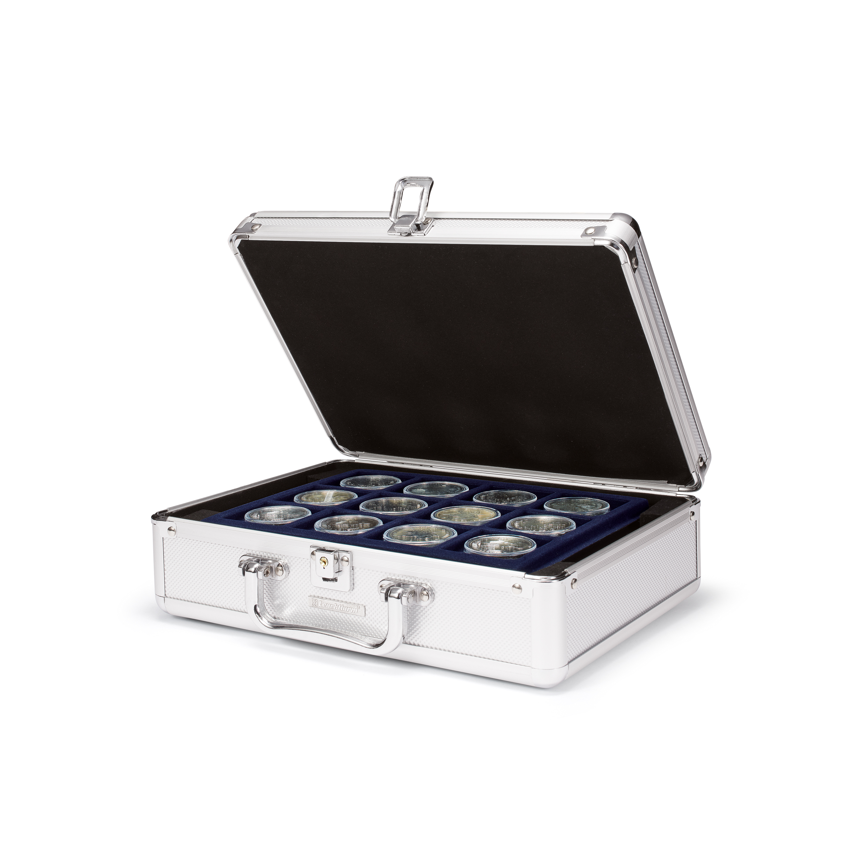 La petite valise pour pièces de monnaie Cargo S6 offre une solution de rangement élégante et sûre pour votre collection de pièces de monnaie. Elle est entièrement revêtue de velours bleu foncé, ce qui lui confère non seulement un aspect attrayant, mais protège également vos pièces de manière optimale. Le couvercle rembourré de la mallette garantit une protection supplémentaire, tandis que la fermeture verrouillable avec deux clés assure la sécurité. À l'intérieur de la mallette se trouvent six plateaux, chacun pouvant contenir 20 pièces de monnaie d'un diamètre maximal de 41 mm. Le Cargo S6 allie fonctionnalité et élégance et constitue le choix parfait pour les collectionneurs de pièces de monnaie exigeants.